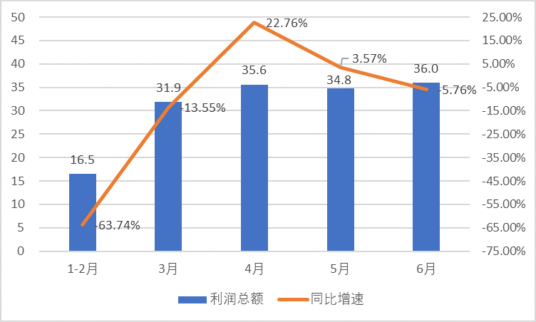 可惜的是,随着营收增幅的回落,利润大涨的走势未能延续:5月和6月,规模以上企业分别实现利润总额34.8亿元、36.0亿元,同比增幅分别为3.57%、-5.76%。