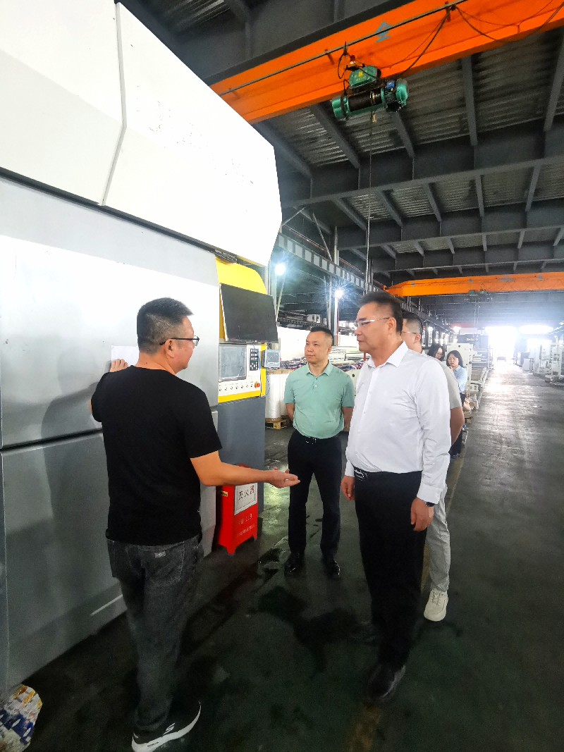 中山优莱德公司负责人鲁总与技术负责人贺总陪同考察团成员到厂房进行了实地参观,对无溶剂油墨凹版印刷机的优势进行了详细讲解,多位考察团成员结合自身经验与公司需求,就无溶剂凹版印刷机的性能、成本、油墨等方面与优莱德进行了沟通,认为优莱德的无溶剂油墨凹版印刷机是业内划时代的产品,对于与优莱德合作表示了浓厚的兴趣。