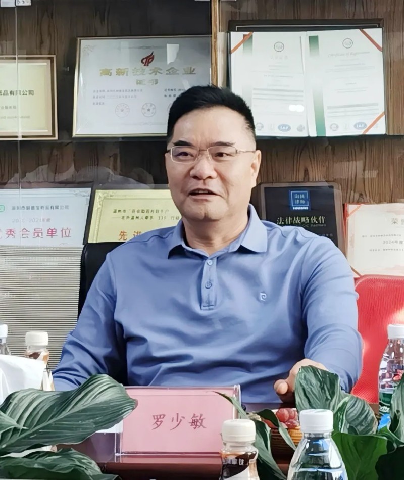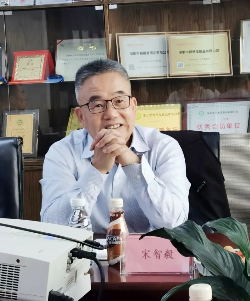 座谈中,丽德宝总经理杨福勇介绍了公司的发展历程及当前的经营现状。作为一家深耕包装领域二十年的企业,丽德宝已从传统制造商成功转型为综合性包装解决方案提供商,长期为 vivo、OPPO、三星、比亚迪等知名品牌提供高端包装配套服务。
