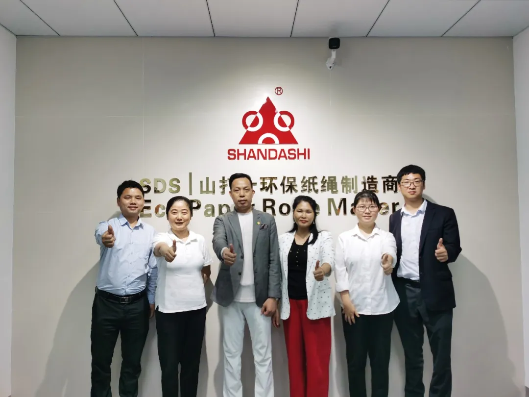 协会秘书长刘莹,副秘书长颜利娟,宁波银行股份有限公司深圳分行客户经理熊明志,福海供应链(深圳)有限公司业务总监唐由东一行在深圳市山打士纸绳制品有限公司受到总经理梁日平、副总经理王稳定的热情接待。梁日平总经理详细介绍了企业经营与创新实践,他谈到山打士专注于纸绳及纸制精品的创新制造,包括纸提手、纸打包带、纸织带、纸拉菲草、纸袋手提绳等产品覆盖16大类、超1000种花色,年产能突破10亿米,公司坚持以环保纸产品为主导,重创新、守绿色的发展理念,立足差异化竞争,聚焦服务多家国内外知名品牌客户。